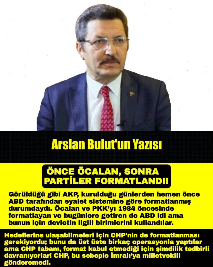 Hedeflerine ulaşabilmeleri için CHP’nin de formatlanması gerekiyordu; bunu da üst üste birkaç operasyonla yaptılar ama CHP tabanı, format kabul etmediği için şimdilik tedbirli davranıyorlar! CHP, bu sebeple İmralı’ya milletvekili gönderemedi. MHP, zaten devlet partisiydi… Devletin formatlanmasına ise 1952’den itibaren NATO üzerinden başlanmıştı…