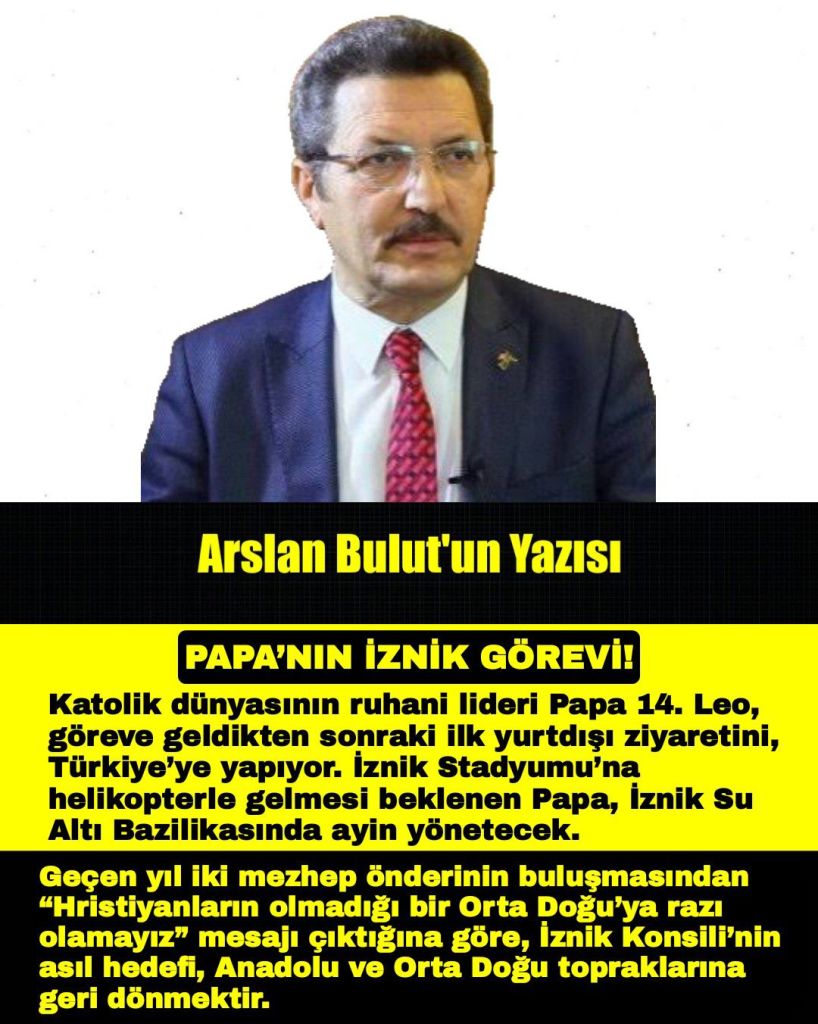 “Fener Rum Kilisesi’nin, İznik Konsili’nin 1700. yıl dönümünü gerekçe göstererek İznik’te gerçekleştirmek istediği ekümenik nitelikli siyasi etkinliği kabul etmiyoruz. Bu tür organizasyonlar, dini tarih üzerinden siyasi bir mesaj verme çabasıdır. 1925 yılında aynı etkinlik yapılmak istenmiş, ancak Gazi Mustafa Kemal Atatürk’ün duruşu net olarak anlaşılınca geri çekilmişlerdir. Bugün de bizler aynı kararlılıkla bu girişime karşıyız. Mesele, bu tarihi olayın bir bahane olarak kullanılması ve Fener Rum Kilisesi’nin siyasi pozisyon elde etme çabasıdır. Bu etkinliğe göz yumanlar, Türkiye Cumhuriyeti’nin temel değerlerini ve milli iradenin hassasiyetini yok saymaktadır.”