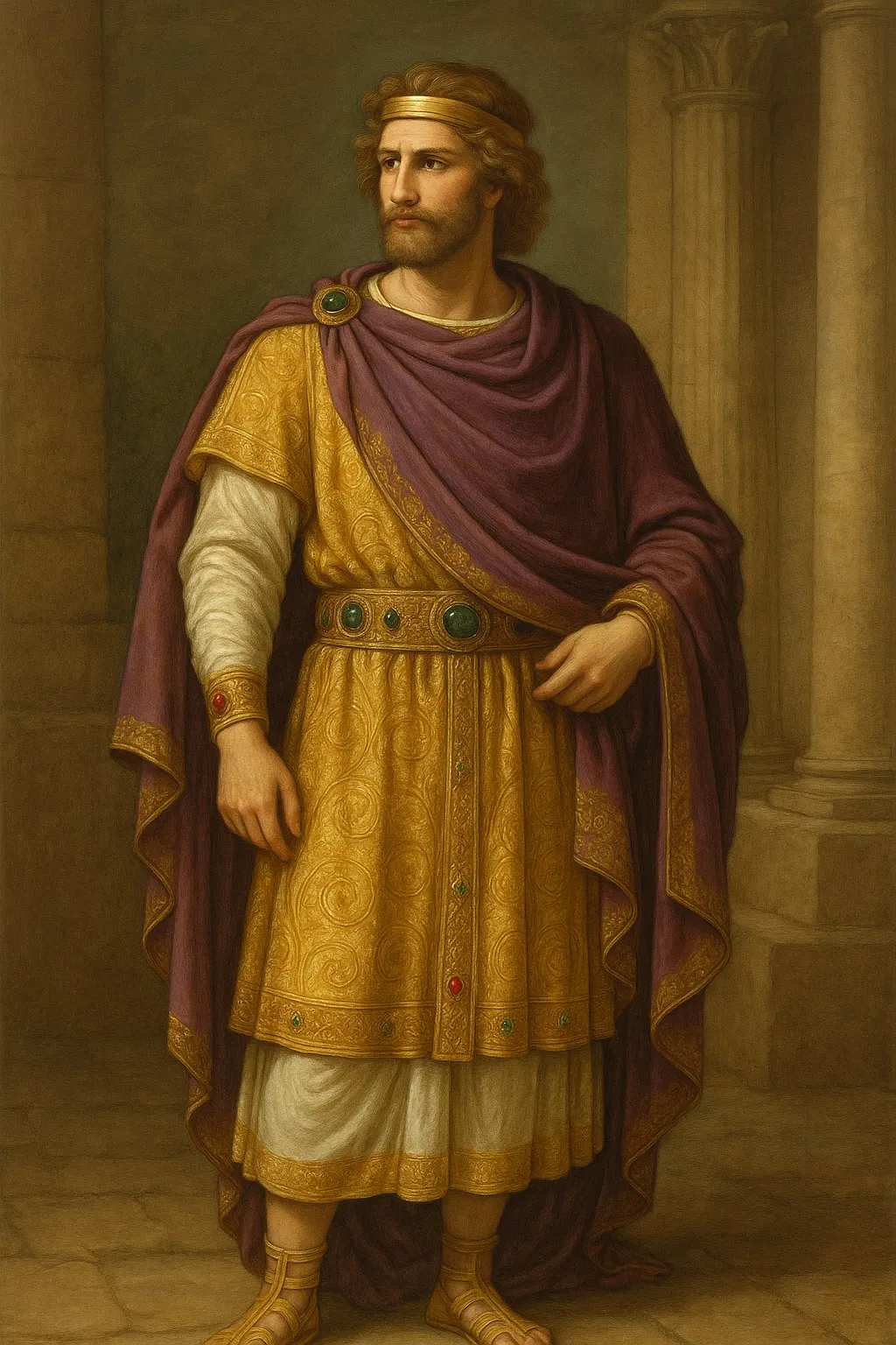 Pers ve Yunan kıyafetlerini kombinleyen Büyük İskender’in temsili bir resmi